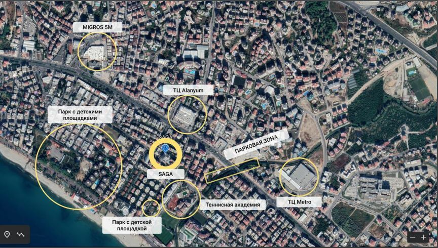 В центре Алании практически невозможно найти комплексы, расположенные близко к пляжу, которые имеют большую территорию. Отдыхая или проживая в Saga, вы будете рядом с развитой инфраструктурой курортного города, но при этом наслаждаться тишиной и большой придомовой территорией.